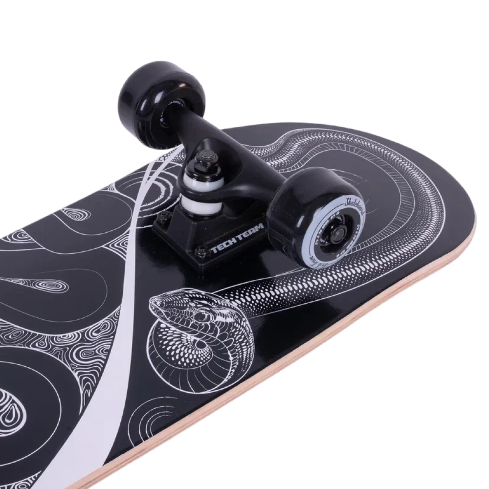 Нижняя часть деки украшена крутым принтом в черном цвете со змеей, что добавляет этому скейтборду индивидуальности и характера. Тип деки с двойным концевым загибом (Double Kick) позволяет выполнять самые сложные трюки с легкостью.