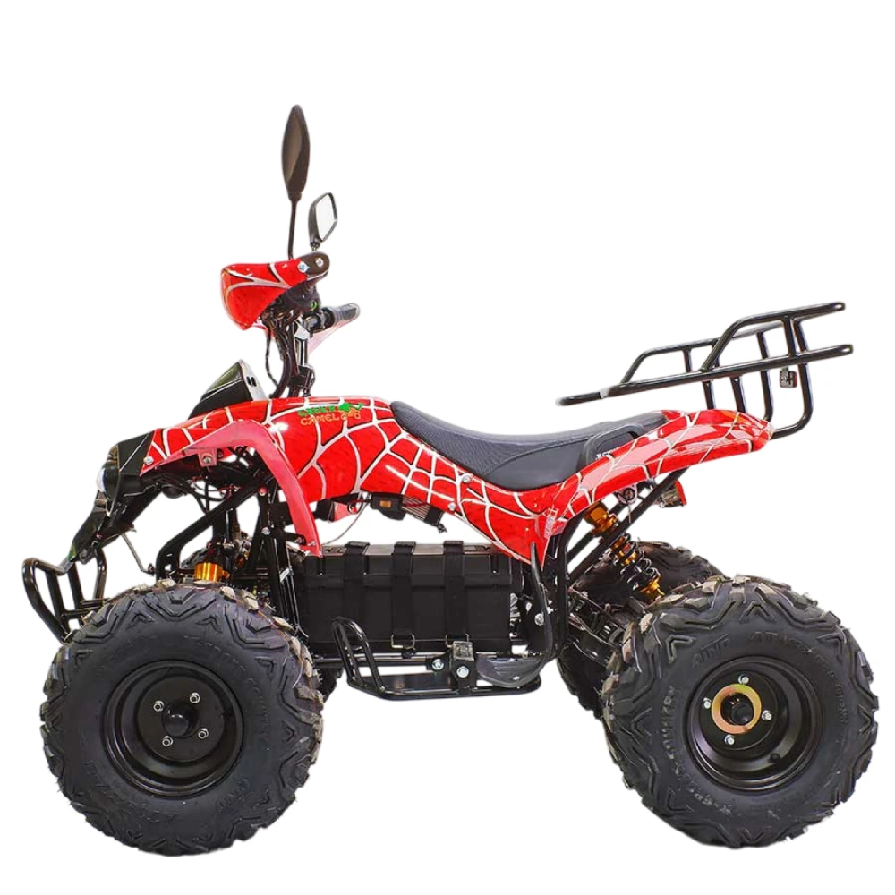Быстрый, надёжный и невероятно стильный – все это про подростковый квадроцикл GreenCamel Atakama T500 Красный паук. Он прекрасно подойдёт для детей возрастом от семи лет. По своим техническим характеристикам он не уступит целому ряду электроскутеров. Он способен развивать скорость в 40 км/ч. На одном заряде преодолеет 40 км (можно приобрести более мощные батареи). Для полной подзарядки вам понадобится восемь часов.