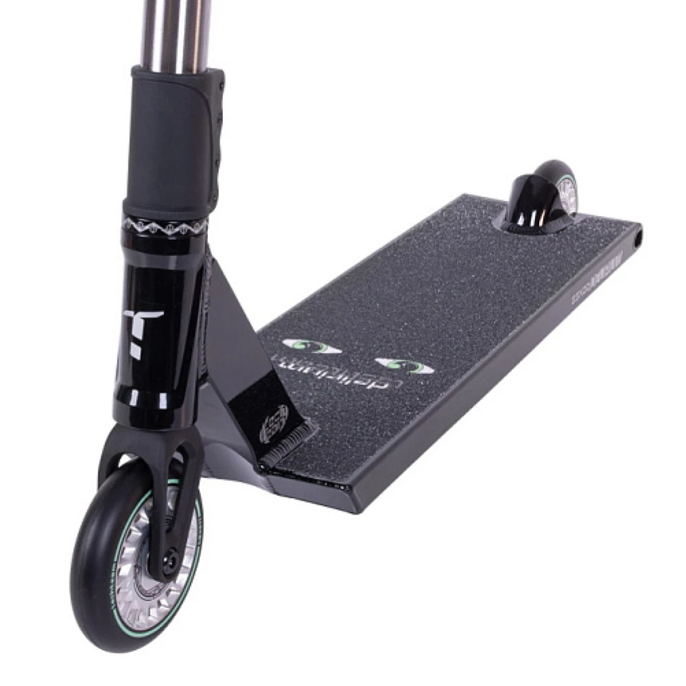 Легкий и прочный алюминиевый сплав, из которого изготовлена рама, гарантирует надежность и маневренность во время выполнения самых смелых трюков. Два полиуретановых колеса диаметром 110 мм создают превосходное сцепление с поверхностью, а плавность хода дополнительно поддерживается высококачественными подшипниками класса ABEC 9.