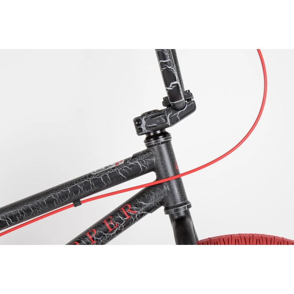 Колеса изготовлены из алюминиевого обода, рассчитаны на скоростную езду в экстремальных условиях. Рулевая часть интегрированная, в сочетании с алюминиевыми педалями и максимальным выносом обеспечивает гладкость и надежность движения.