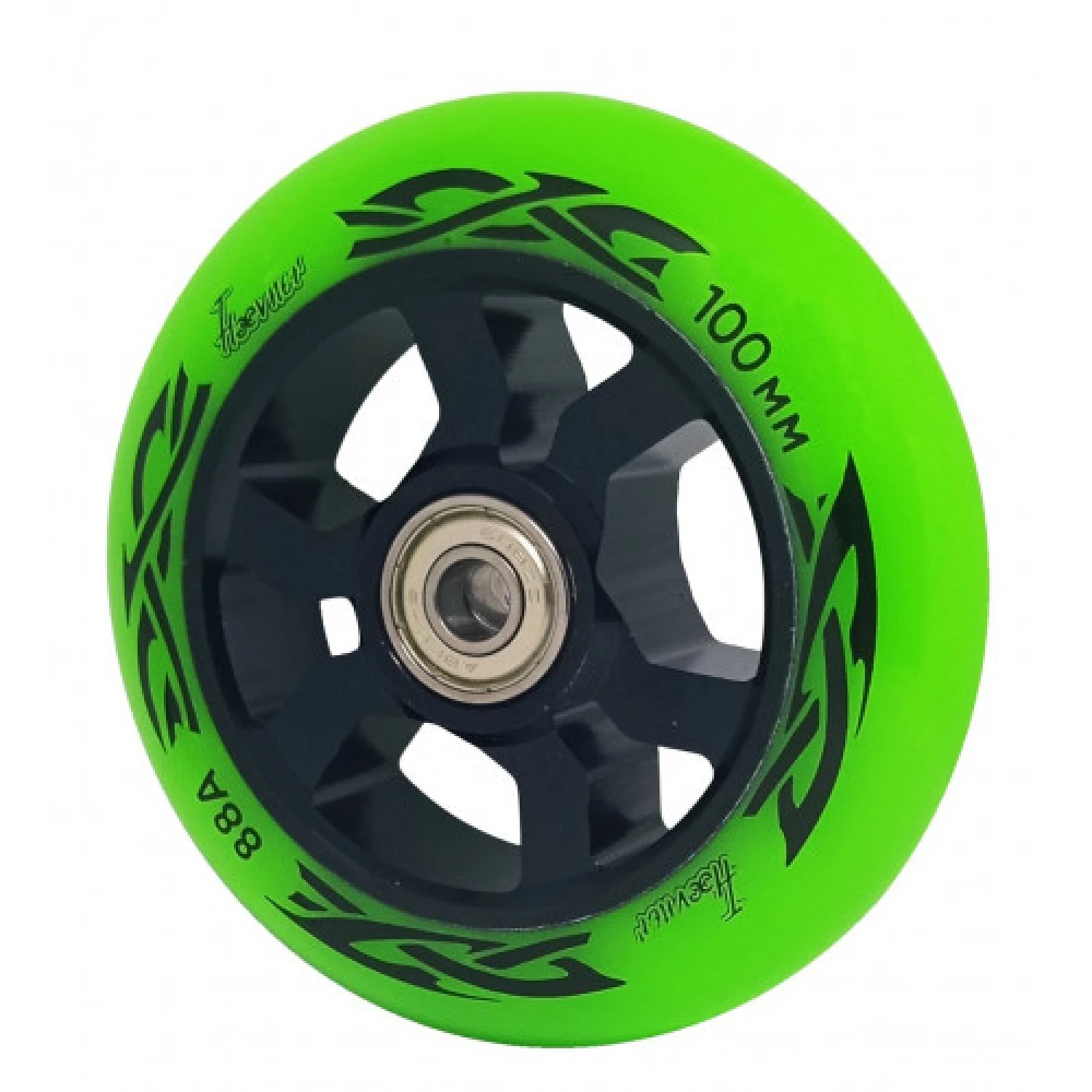 Колесо для трюкового самоката Haevner алюминиевое (100мм/ABEC 9) черно-салатовый